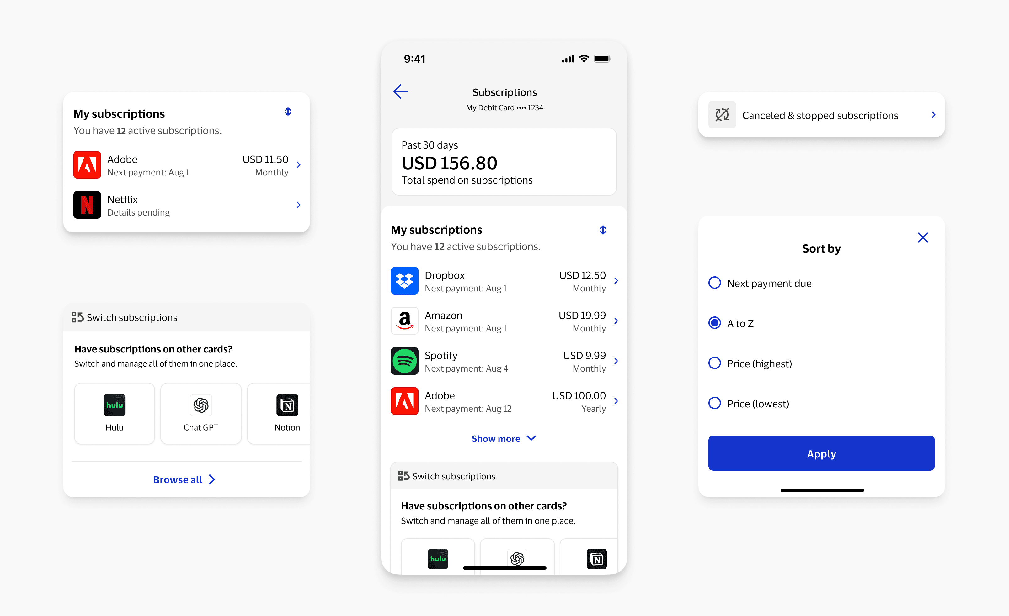 Visa Subscription Manager gives users control over their recurring payments, building trust and visibility.